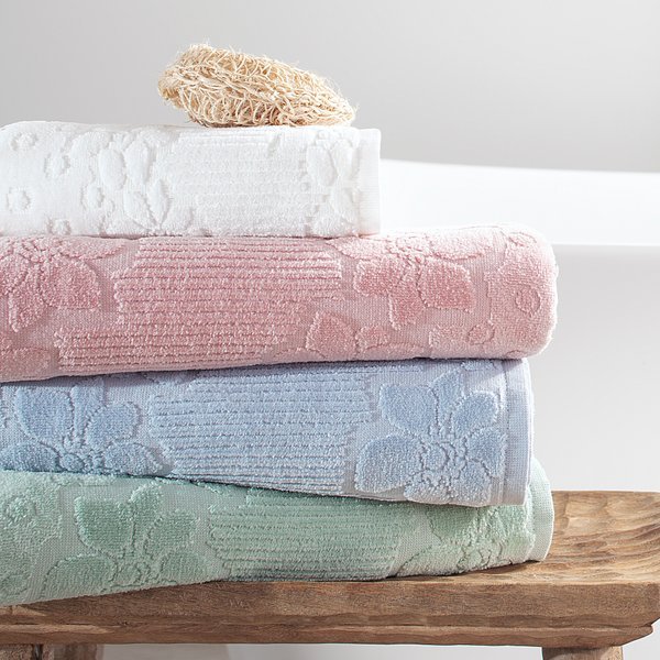 A Toalha de Banho Para Bordar Passa fitas, possui corpo aveludado e tratamento antipilling que impede a formação das “bolinhas”