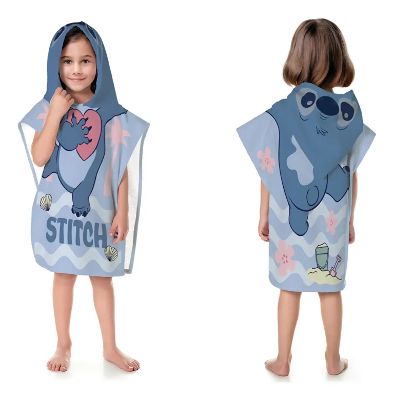 Toalha Poncho Capuz Infantil Praia Piscina Stitch