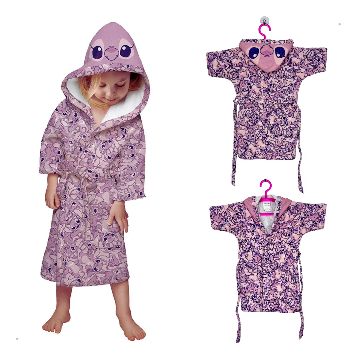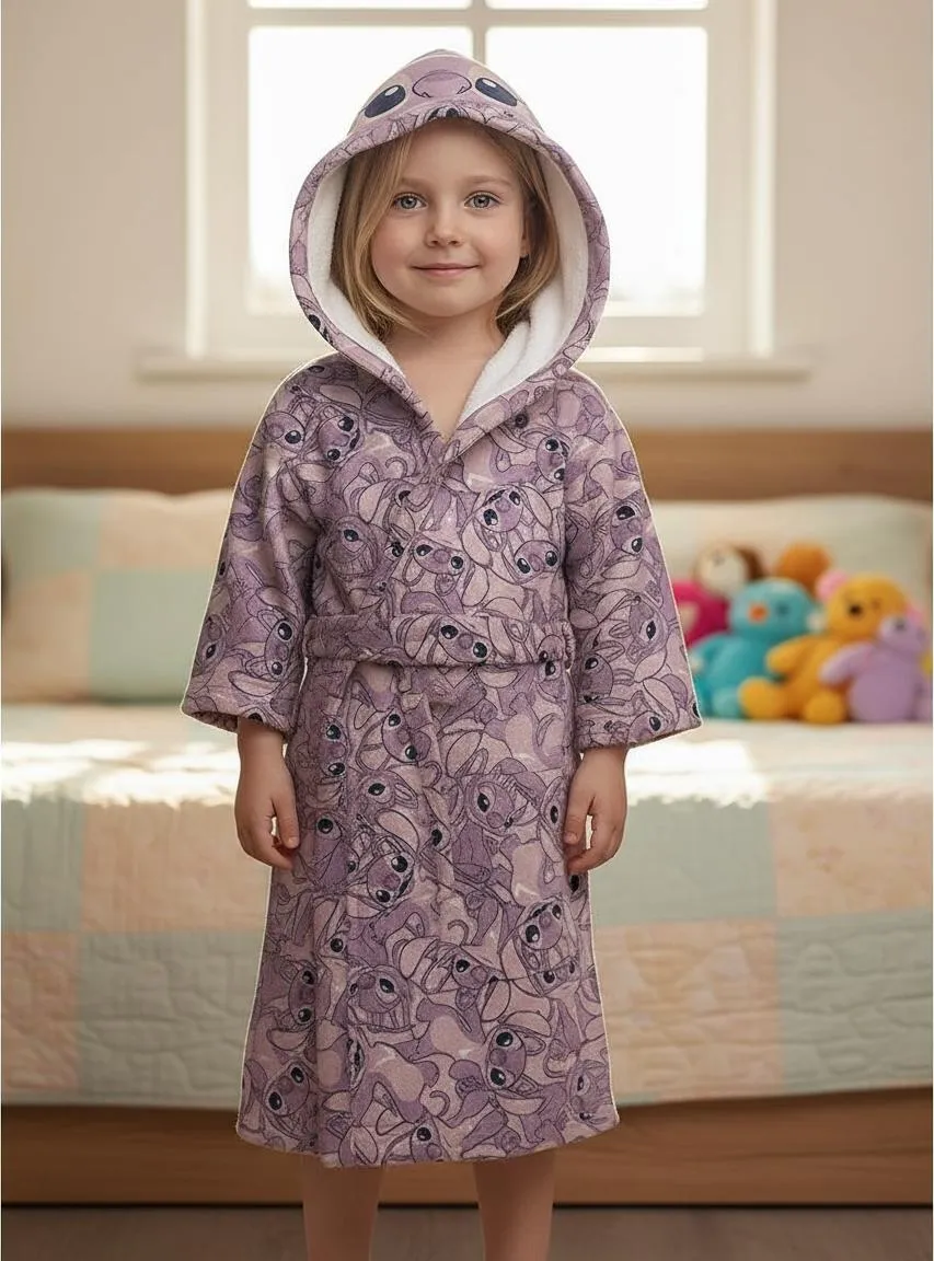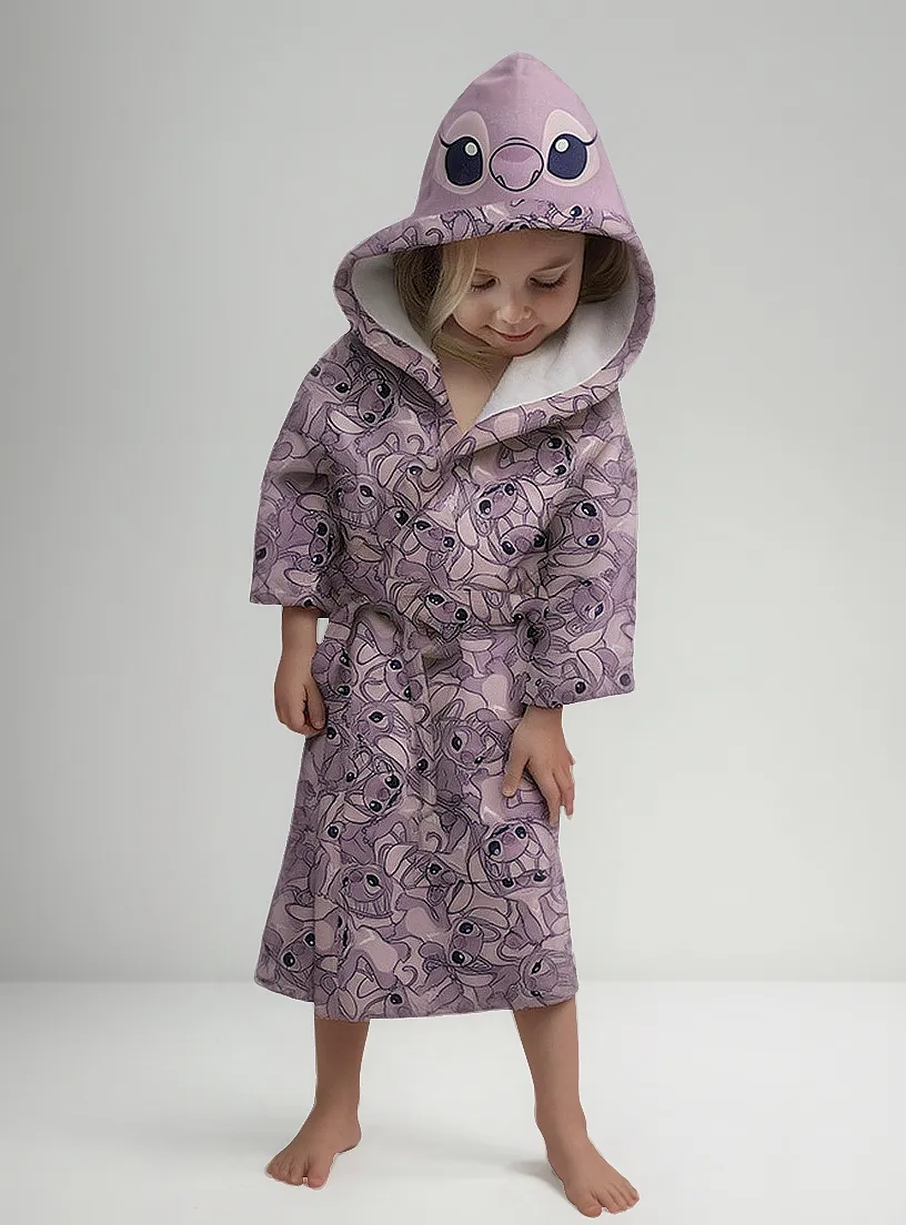 Roupão Stitch Angel Com Capuz Aveludado Verso Atoalhado